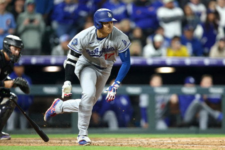 ドジャースの大谷はロッキーズ戦に1番指名打者で出場し、4打数1安打だった。9回の第5打席で右前打を放ち、昨季から続く連続出塁を50試合に伸ばした。ドジャースは3―4で敗れた=18日、デンバー 【AFP時事】