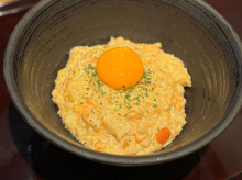 トレーラーハウスが店舗。店舗面積は約5坪。席数は4人掛けと2人掛けテーブル合わせて6席。看板メニューは、ごはん・酢飯の上に「紅富士」の切り身と中落ちをのせた「鴨江サーモン御膳」(並=1,848円、上=2,200円)で、たいだしの吸い物とサラダ、デザートを付ける。「セレブサーモン御膳」(2,750円)には切り身や希少部位の「ハラス」をのせるほか、トッピング3種をイクラとキャビア、ベニズワイガニ、北海道ホタテ、ウニ、ネギトロから選んでもらう。「サーモンのリゾット」(1,408円)はボリュームが手頃で女性客に人気という。