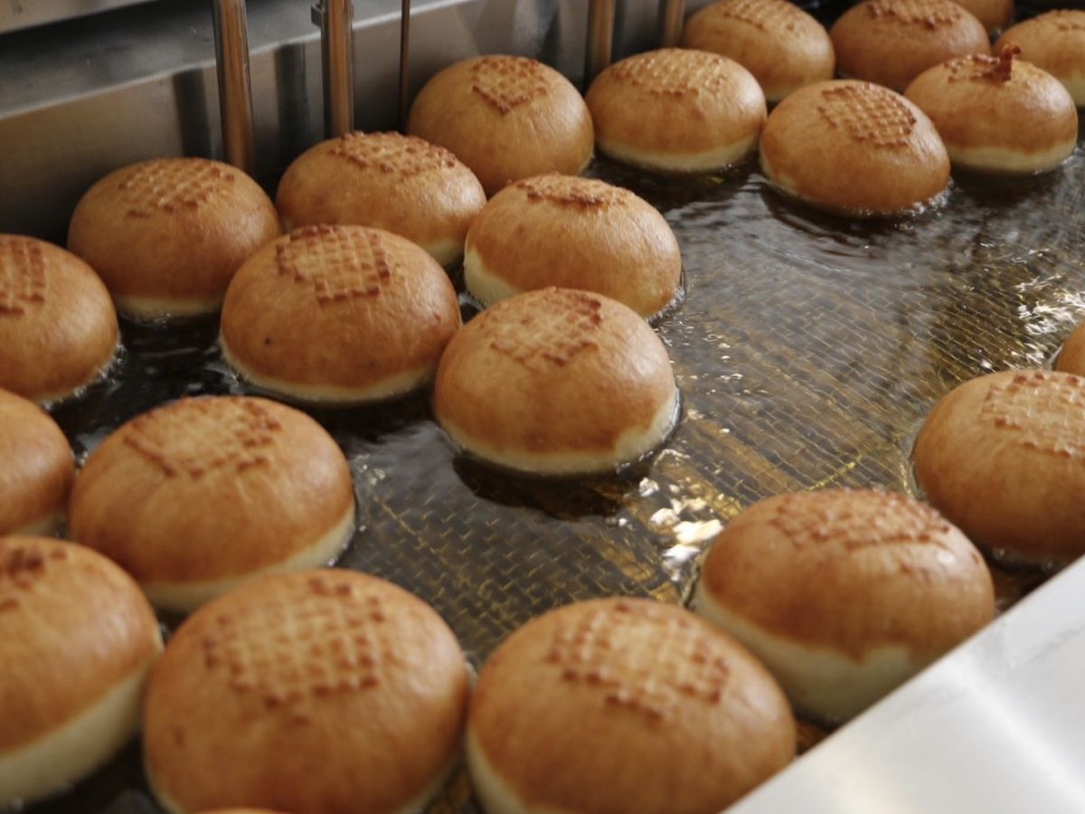 ドーナッツは高温で一気に揚げることで、外はカリっと揚がり、中はとろける口溶けになるよう仕上げる