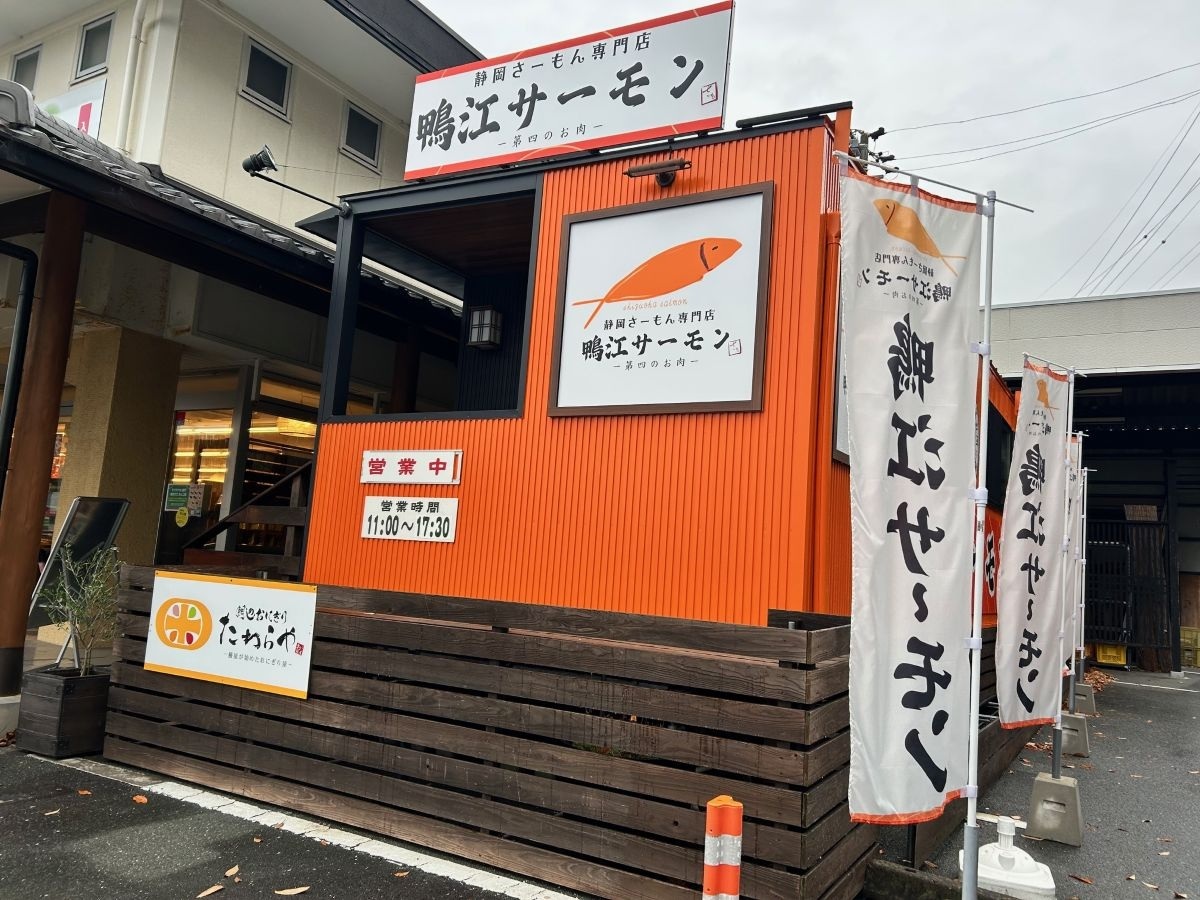 静岡さーもん専門店「鴨江サーモン」(浜松市中央区鴨江3、TEL 070-6451-0406)が12月9日、四季彩堂根上り松店敷地内にオープンした。