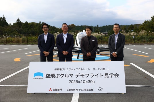 三菱地所株式会社(以下、三菱地所)と三菱地所・サイモン株式会社(以下、三菱地所・サイモン)及び株式会社AirX(以下、AirX)は2025年10月30日、「御殿場プレミアム・アウトレット バーティポート」(所在地:静岡県御殿場市)にてeVTOL(以下、空飛ぶクルマ)の実機によるデモフライトを実施しました。国内の商業施設で空飛ぶクルマ実機の飛行は初※であり、今後の社会実装に向けた重要なステップとなります。