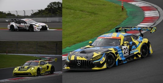 TKRI松永建設AMG GT3(23号車)、DENSO LEXUS RC F GT3(31号車)、seven x seven PORSCHE GT3R(666号車)ポイントランキングでも僅差の3台にスタートから目が離せません!