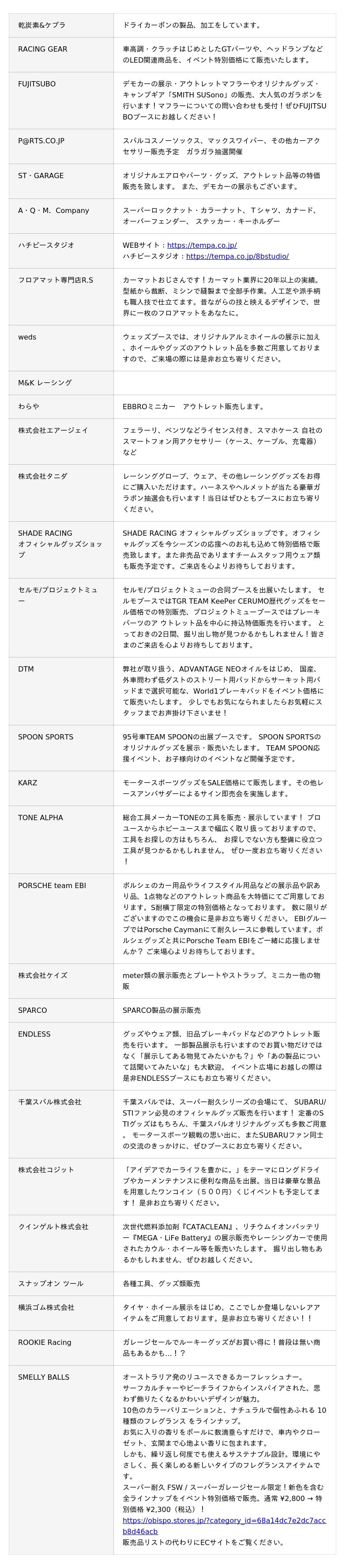 スーパー耐久やSUPER GTに参戦しているチームやチューニングメーカーなどが多数出店!