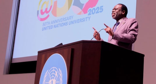 9日と10日、舞台は東京・国連大学(UNU)へ。9日の前夜祭レセプションは、国連大学のホール内で華やかに開催された。会場には日米の自治体関係者や国際機関の代表者らが集い、温かな雰囲気の中で開幕を迎えた。冒頭では、主催者を代表して日米姉妹都市協会(JUSSCA)の小山田真会長が挨拶に立ち、サミットの意義と、日米の地方が担う新たな外交の形について力強く語った。続いて、元駐米日本大使でありカルコン日本側委員長を務める佐々江賢一郎氏がスピーチを行い、日米間の地域連携の歴史的意義と今後の展望について述べた。会場の期待が高まる中、JUSSCA理事長のアントニー・アルジェイミー博士が乾杯の音頭を取り、出席者たちはグラスを掲げてサミットの成功と友情の深化を祝した。