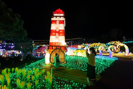 高さ7mの灯台     エリアを灯す灯台ランタン。人々を希望に導くイルミネーションの世界へ誘う!
