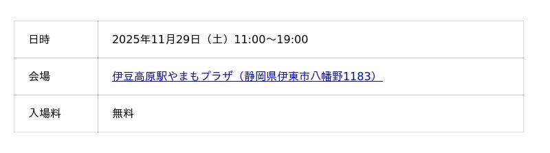 株式会社micro development(静岡県東伊豆町)は、2025年11月29日(土)伊豆高原駅やまもプラザにて、子どもから大人まで楽しめる体験型イベント「やまもプラザ Craft Park」を開催します!