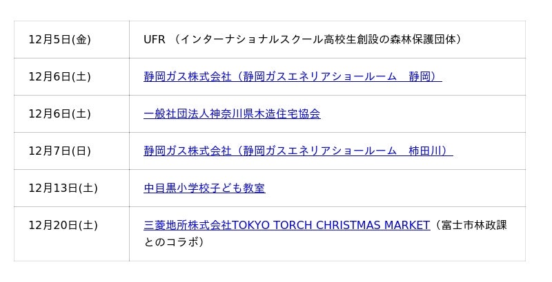 団体・学校・企業・行政関連の「森を守るクリスマスリースワークショップ」予定