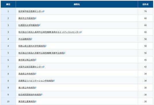 全国の自治体が管理・運営する病床数500床以上の病院ウェブサイト