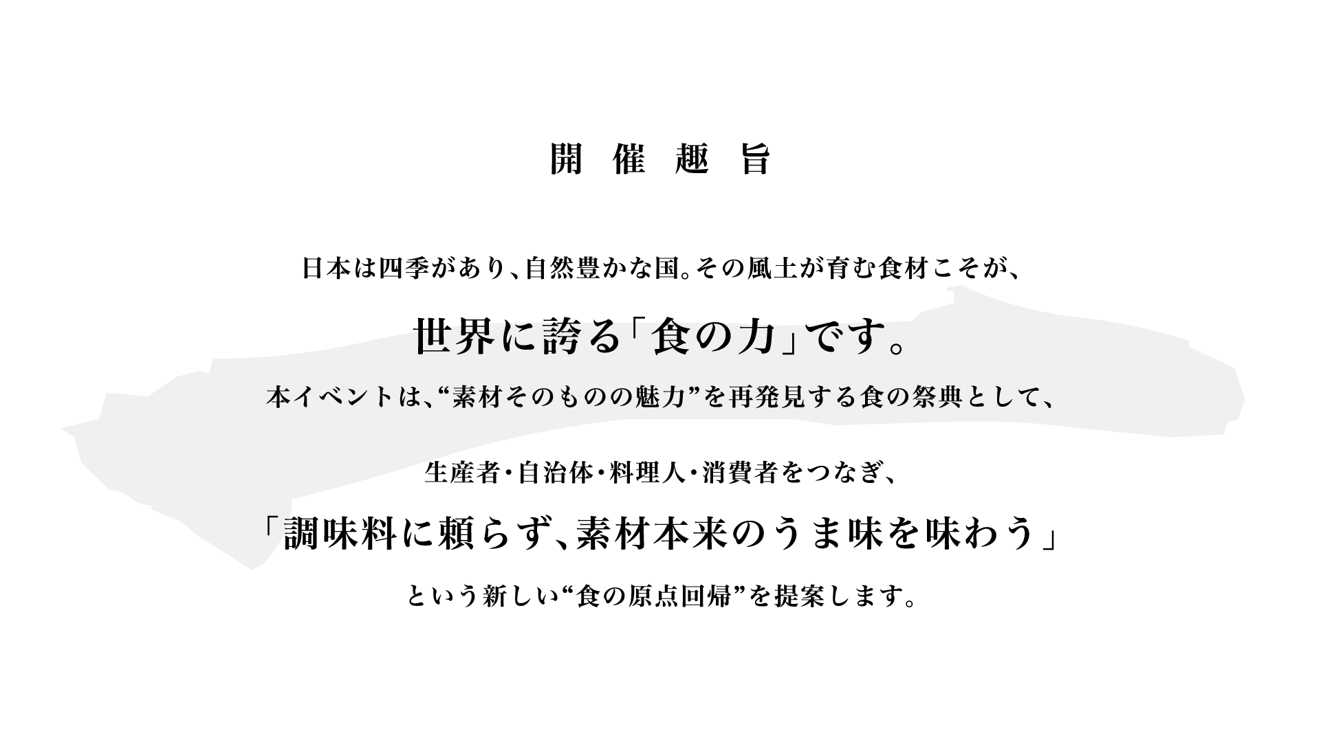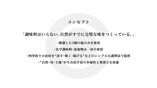 ■ コンセプト|調味料はいらない。自然がすでに完璧な味をつくっている。
