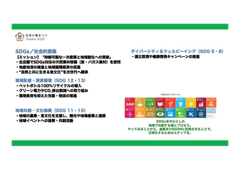 ・ 環境配慮型イベント運営(天然素材容器の使用等)(SDGs 12・13)