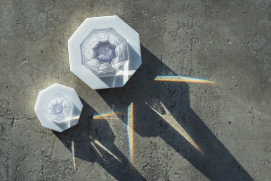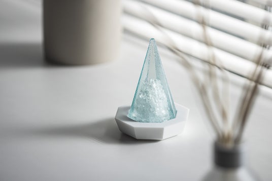 八角推の透明な樹脂に、日本の海から生まれた塩と美しい岩塩を封入。台座も八角形の一体型。