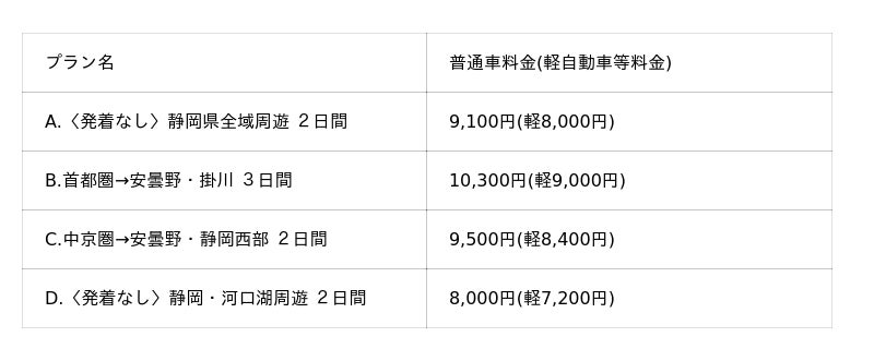 高速道路利用期間:2026年3月7日(土)~12月25日(金)のうち連続する2日間または3日間 ※繁忙期・三連休等を除く