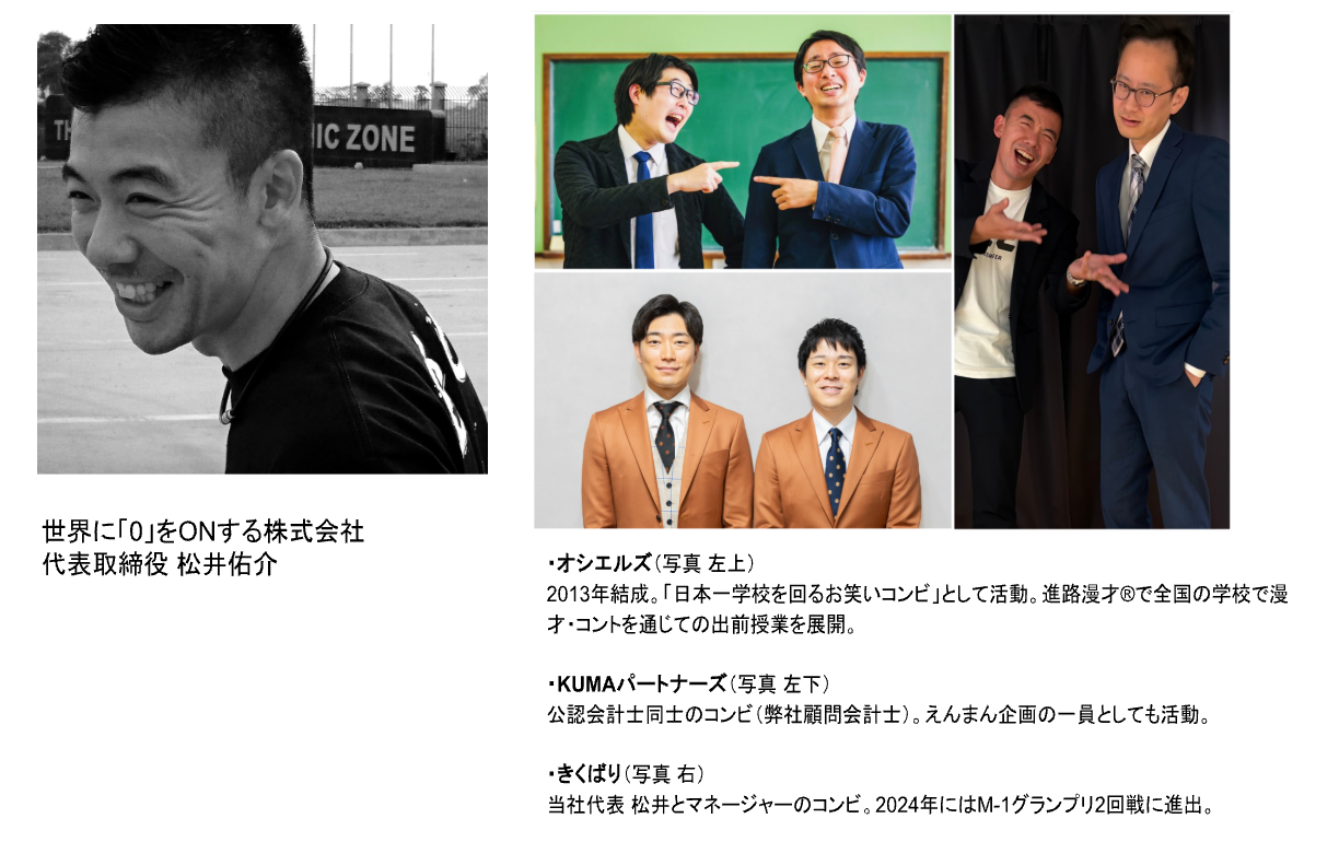 プロの漫才師をはじめ、当社漫才部メンバーや公認会計士として活躍するコンビもゲスト講師として参加。笑いが実社会でどのように活かされているかを実践的な視点から伝えます。