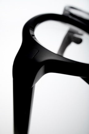 〈Detail 02〉色数は、極限まで削ぎ落とす。テンプルの印字や細かな金属パーツまでを、特別に黒で統一。徹底的に色数を絞ることで、端正な佇まいが生まれました。