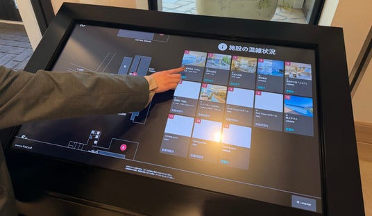 タッチパネル式のサイネージで、お客様が直感的に操作しながら館内情報を確認できます。館内マップ、施設の混雑状況、各種サービス情報などを多言語で表示します。