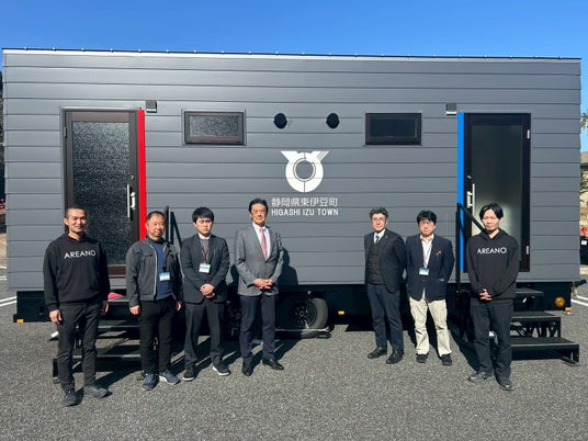 トレーラーハウスの設計・製造・販売を通じて地域の課題解決に取り組む株式会社エリアノは、2026年3月5日、静岡県東伊豆町の「熱川しおかぜ広場」において、「超節水型トイレトレーラー」の納車設置を完了いたしました。