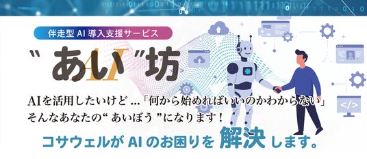 コサウェルは、AI・DX領域におけるシステム開発および導入支援を通じて、企業の業務効率化や生産性向上を支援してまいりました。近年では、AI活用に関する知識や人材不足といった中小企業特有の課題に対応するため、企画立案から導入、運用・定着までを一貫して支援する伴走型AI導入支援サービス「あい坊」を展開しています。