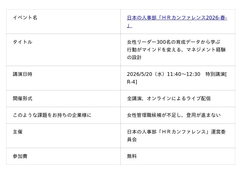 本講演が、女性管理職育成に向き合う人事の皆さまの「次に何を変えるか」のヒントになれば嬉しいです。