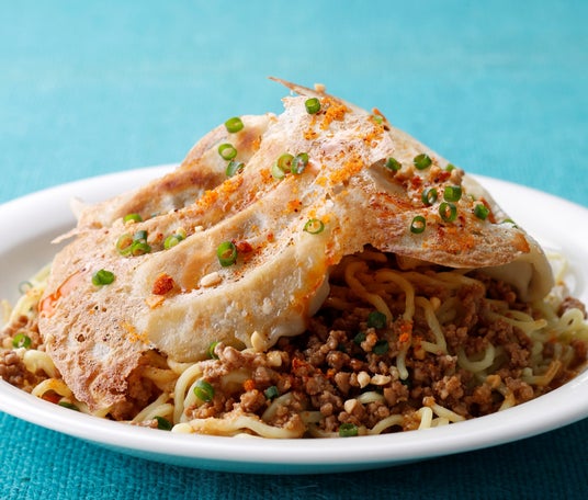 パリッと焼き上げた「大阪王将」の羽根つき餃子をくずすことで、香ばしさと旨みが担々だれと混ざり合い、麺全体にコクと深みをプラス。